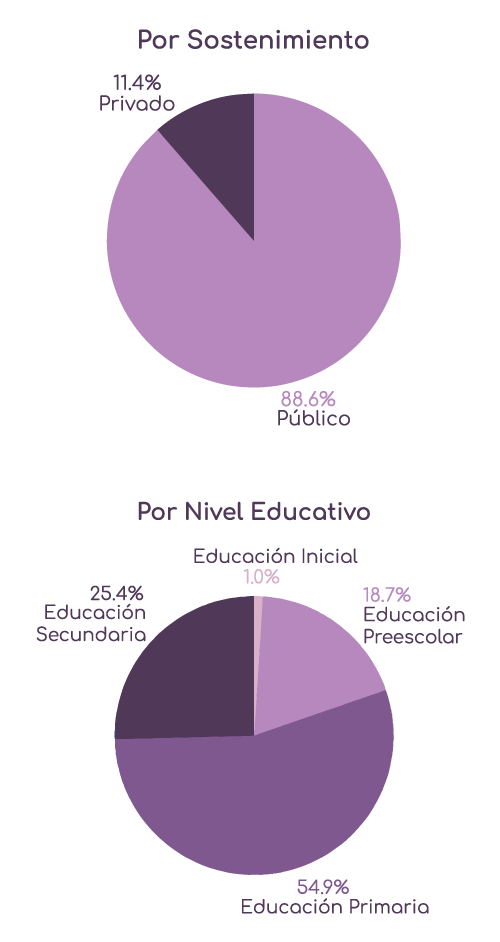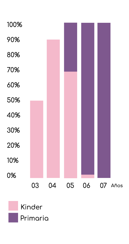 Las siguientes gráficas muestran el porcentaje de atención educativa por edad, y su composición de acuerdo al nivel educativo en el que los alumnos cursan sus estudios.